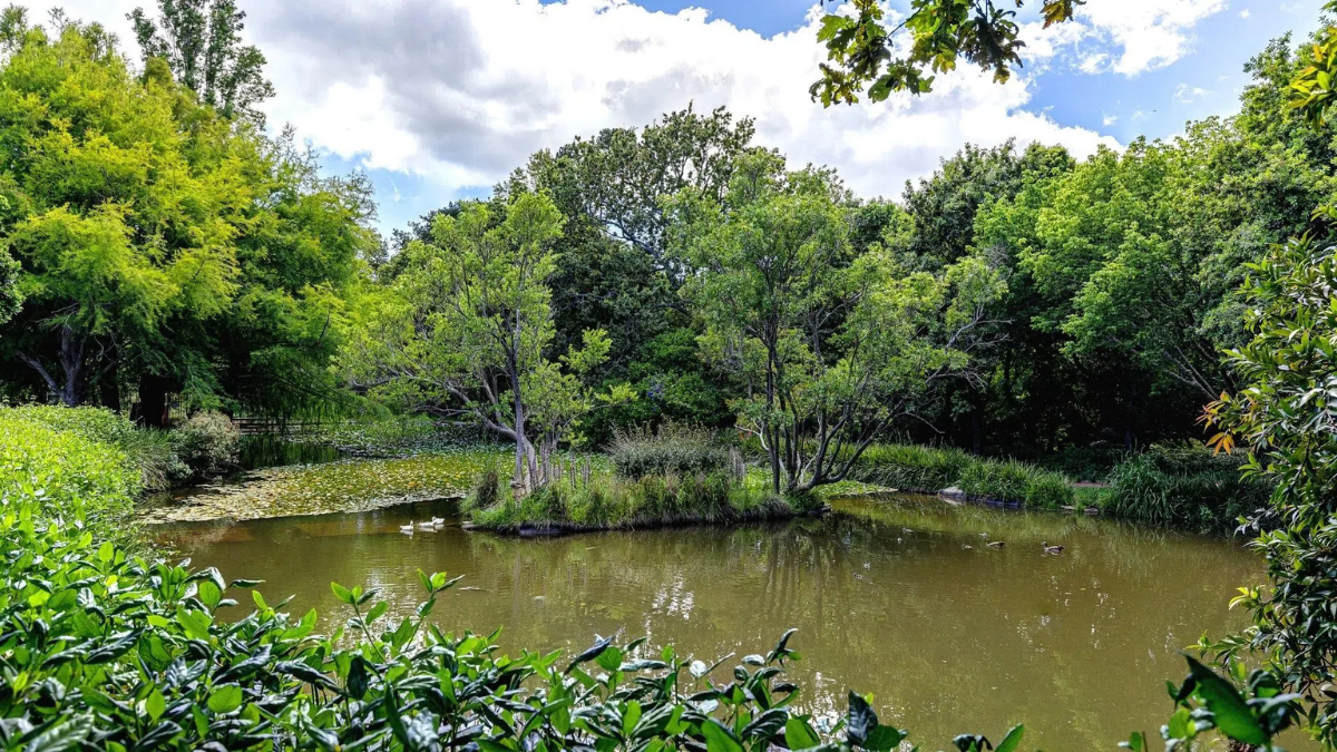 The landscape around and in the estate is carefully cared for. Ancient oak trees, flowering camellia trees and poplars surround the manicured lawns, shrubs and flower gardens of each home.