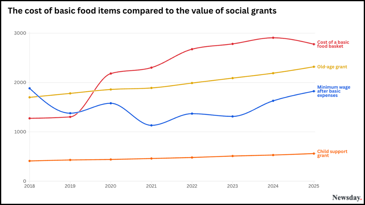 Data shows that minimum wage increases, child welfare grants and old-age grants have not kept up with the spike in basic food costs.