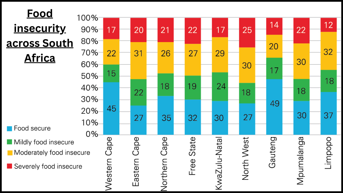 The survey also provides a detailed breakdown of food insecurity levels in South Africa: