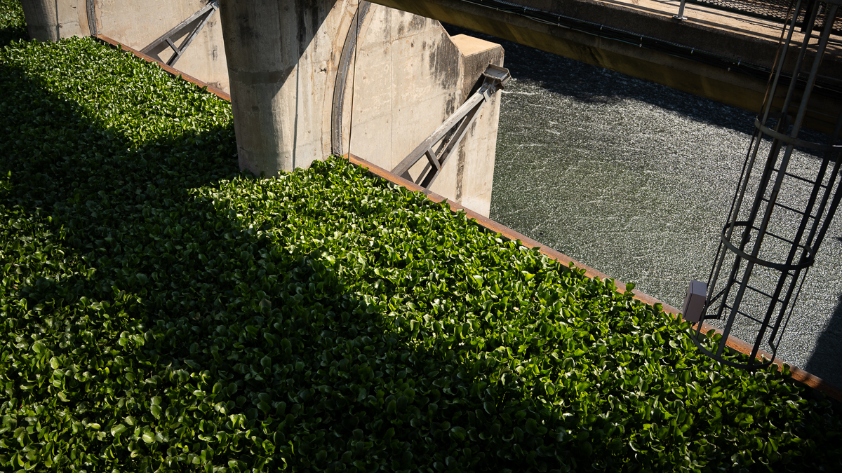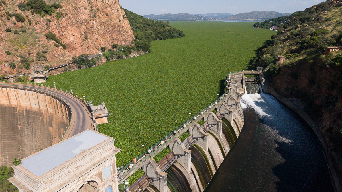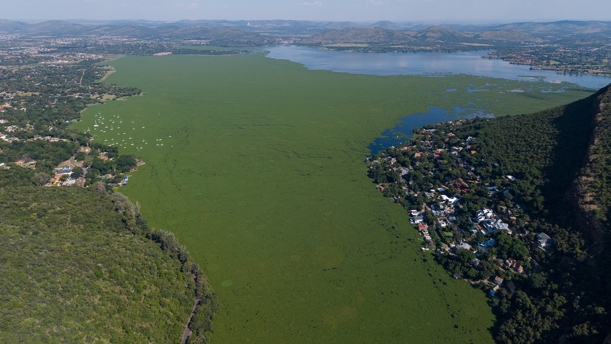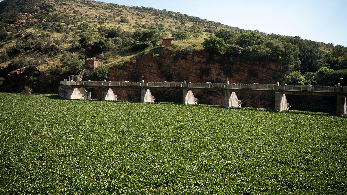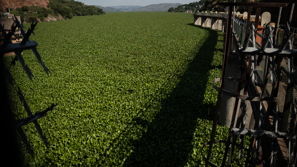 Hartbeespoort Dam, or “Harties” as locals call it, is so polluted that hyacinths have taken over, creating a green mat that covers the surface.