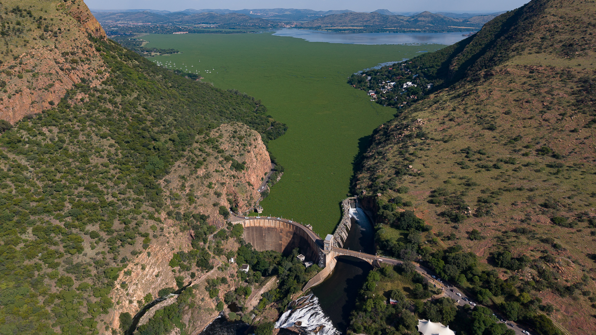 It is built across a gorge cutting through the Magaliesberg, and the Crocodile and Magalies Rivers feed the dam.