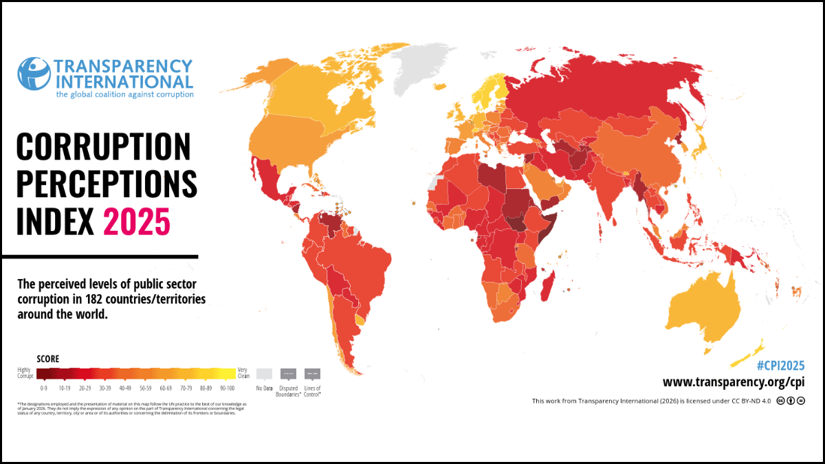 Anti-corruption advocacy group Transparency International has released its Corruption Perceptions Index (CPI) for 2025, revealing that South Africa has failed to improve its standing, remaining at a score of 41 out of 100.